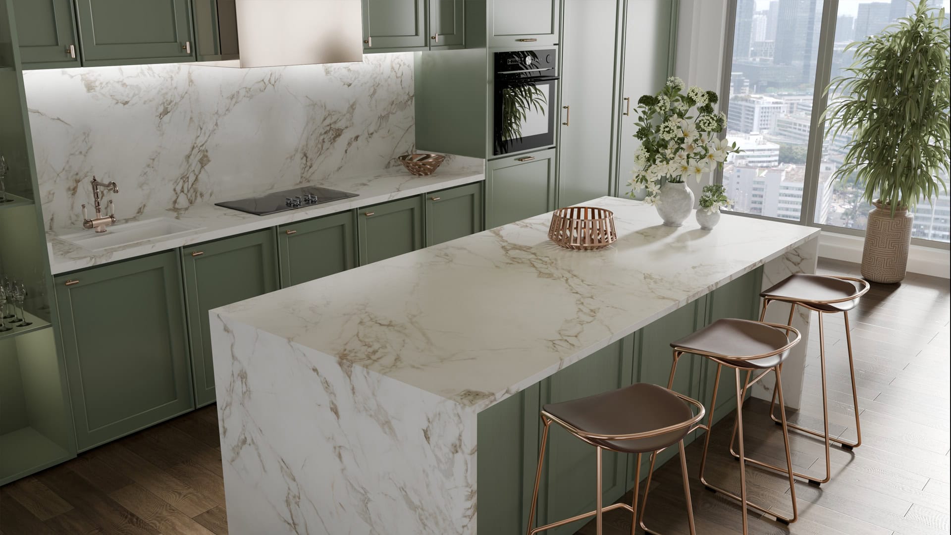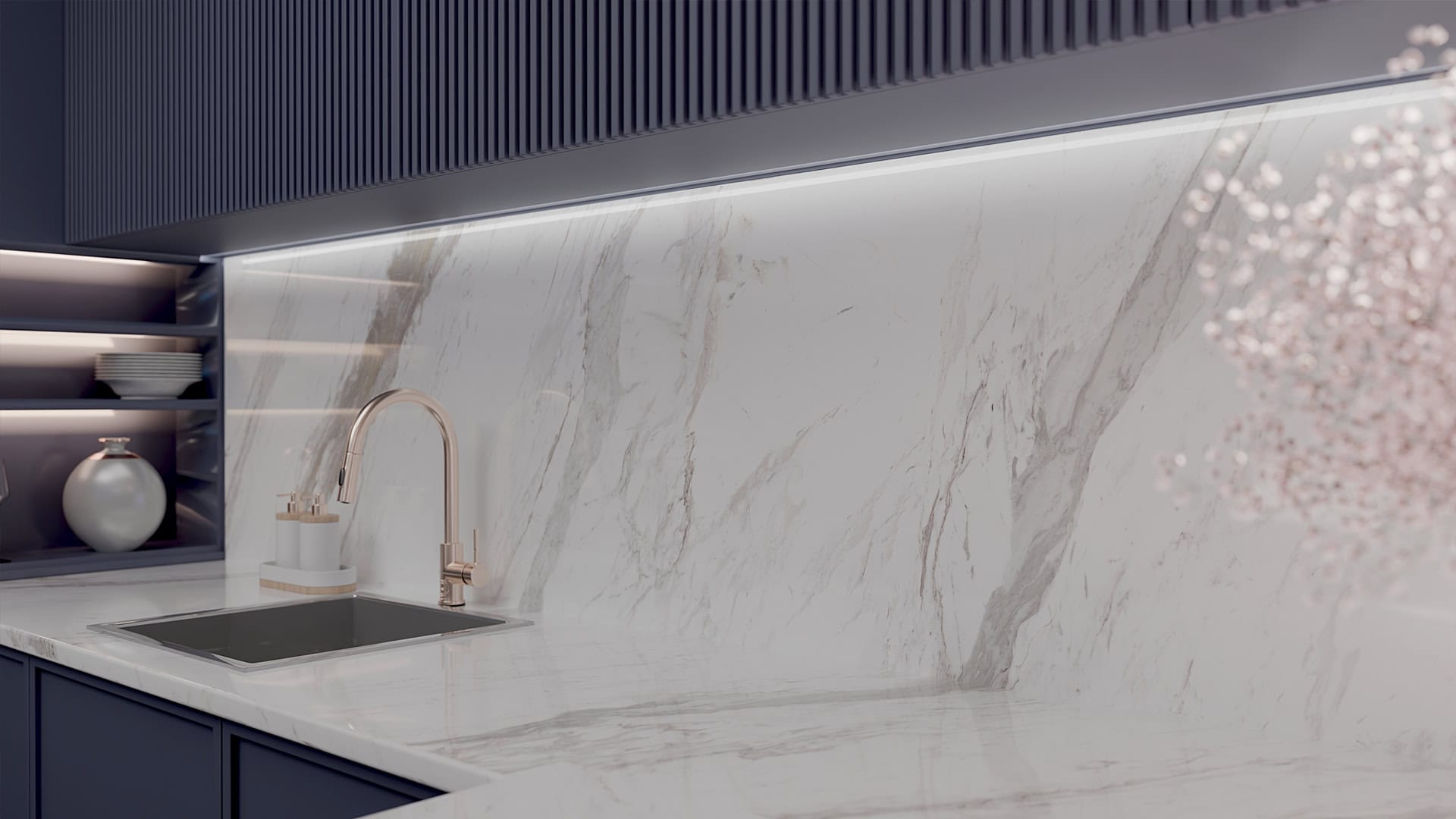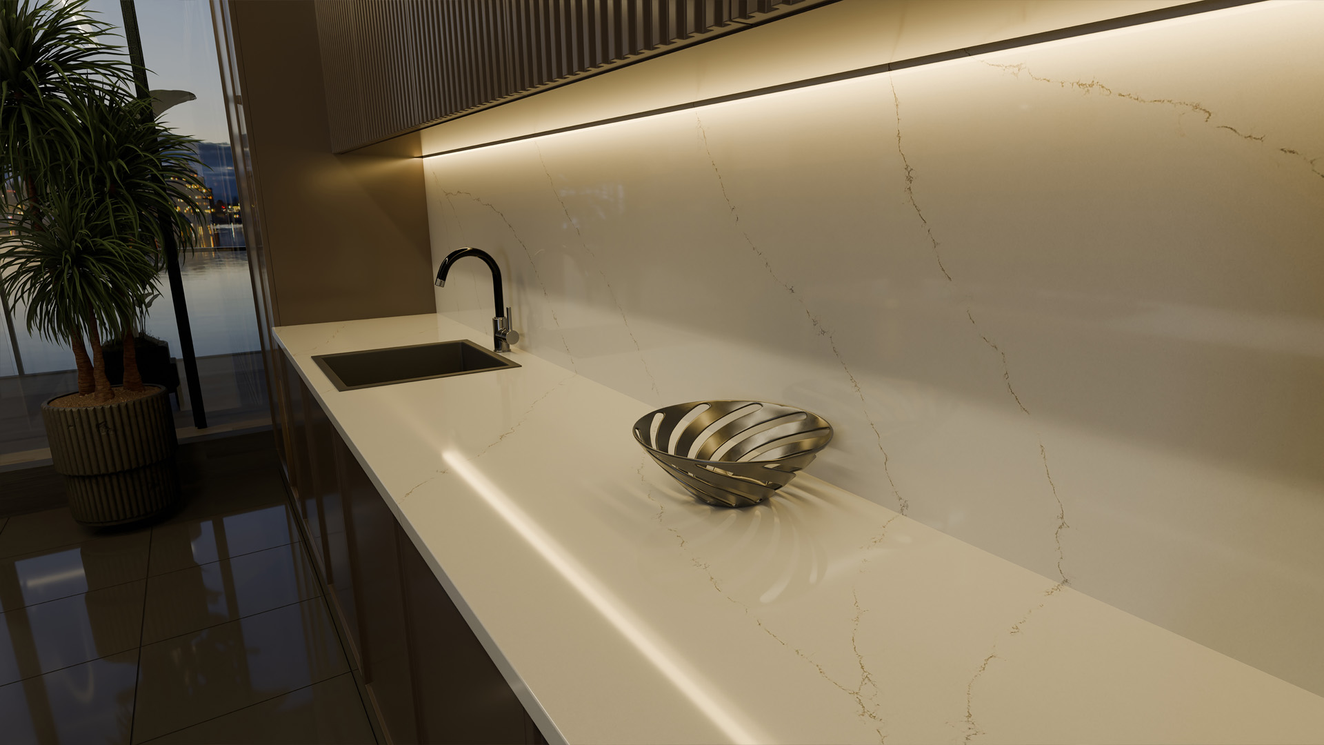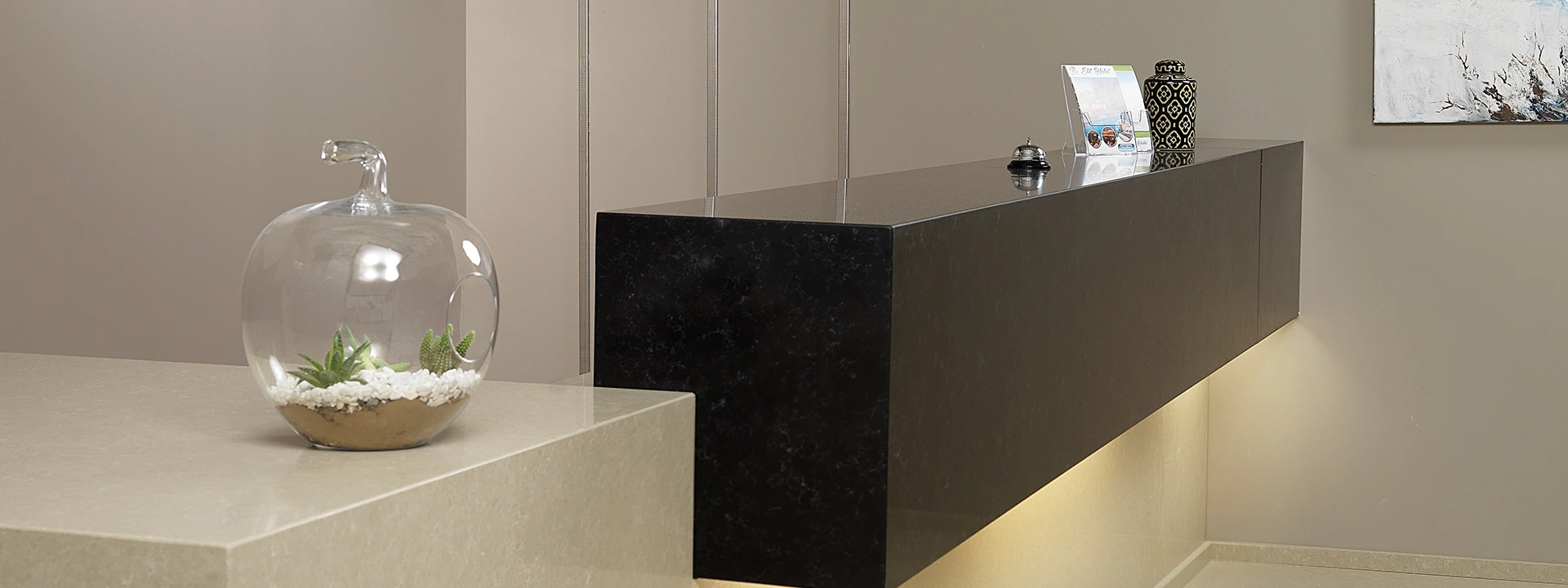 Големите размери на плочите позволяват безшевни повърхности и цялостни дизайнерски решения във всяко пространство.