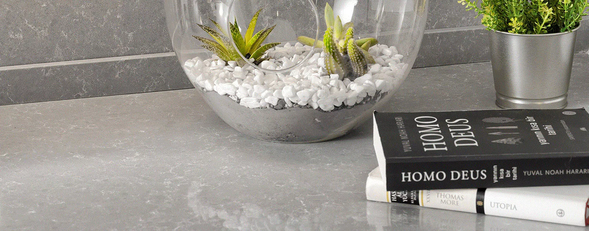 Като обработваме един от най-здравите природни минерали – кварца – с помощта на съвременни технологии, Çimstone предлага естетични, устойчиви и функционални повърхности. С богат избор от цветове, текстури и възможности за приложение, ние създаваме цялостно дизайнерско изживяване за вашето пространство.